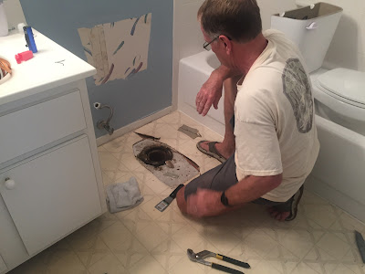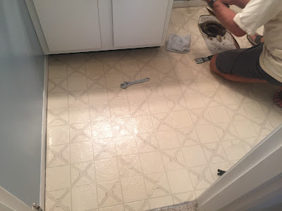 Last spring we started thinking about getting our condo painted. That led to a discussion about how much I hate popcorn ceilings, which led to the floor issues we had -- worn-out and dirty-looking carpet, and Pergo in the kitchen and hall bathroom (not ideal). Jim agreed we should get a price for all of the work, plus 2 new vanities in the bathroom. A local contractor gave us a good price for all of the work. He has done a lot of work in our complex so we figured he knows the buildings well.