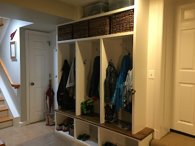 We also had new vanities installed in both bathrooms. Although they are a big improvement over the old ones - higher, drawers, clean (!) - they still feel a little small and cheap. The cultured marble counters are not likely to last for the long haul but they will certainly get us through a few years.