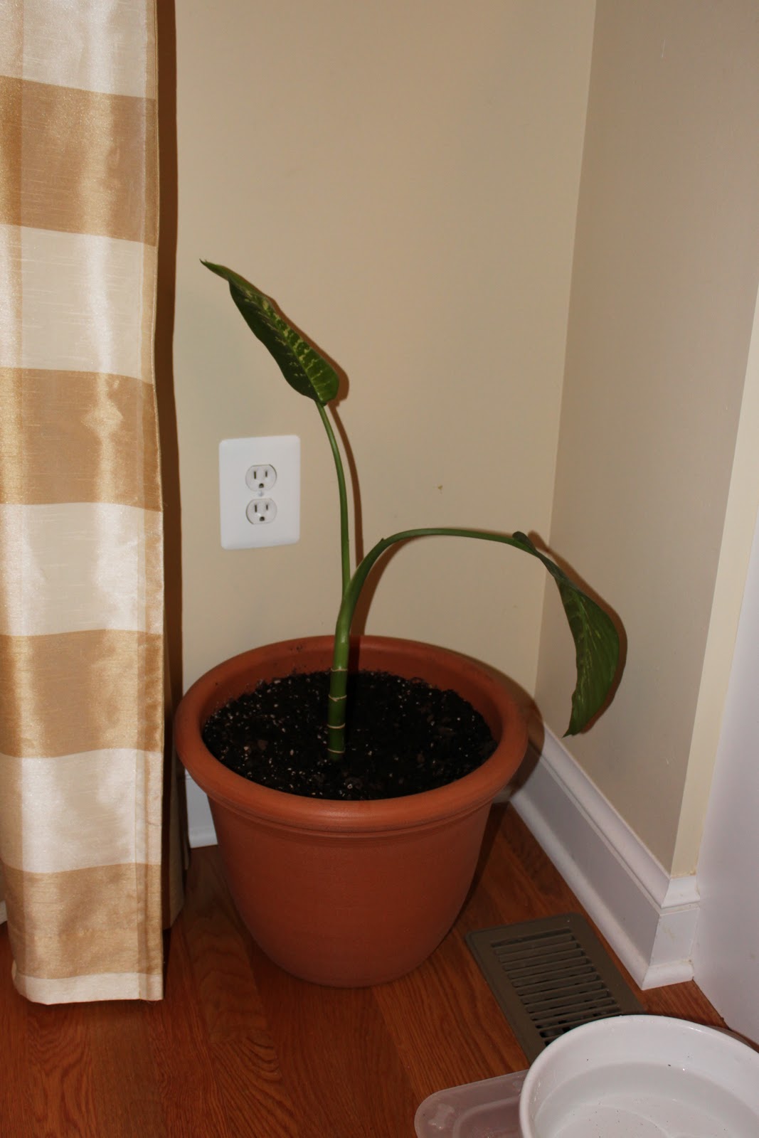 I did it! Finally transplanted my Dieffenbachia house plant into a larger pot. Here is my sad specimen.